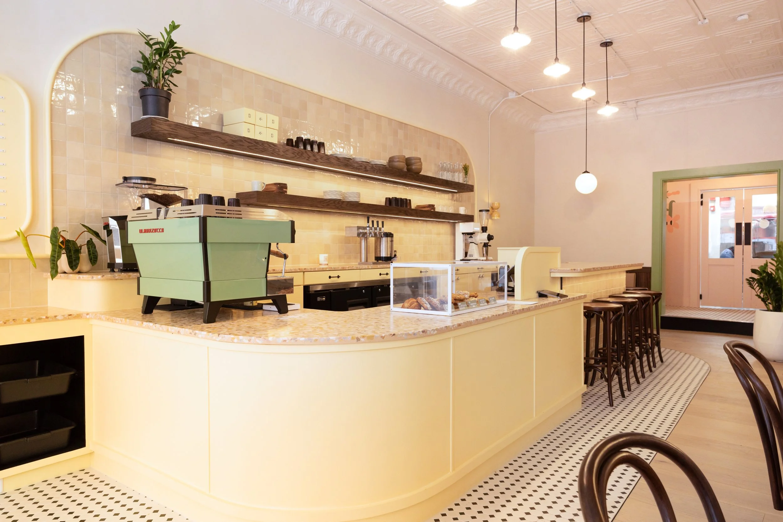 Seated café layout with flexible table arrangements
